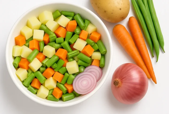 Authentic Sambar Preparation: Pre-cut vegetables that are perfect for making Sambar, a popular South Indian dish made with a mix of vegetables, lentils, tamarind, and aromatic spices.